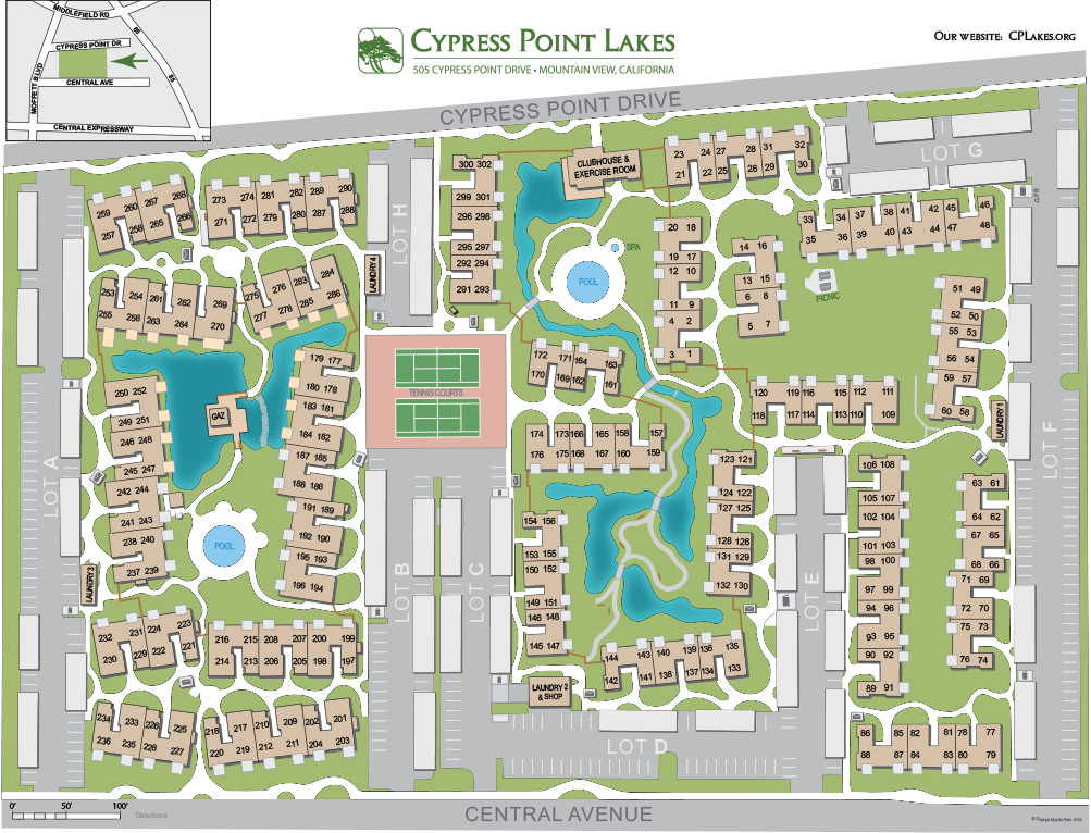 Cypress Point Lakes in Mountain View, California was constructed in 1970 and 1971 by local developer, Thrust IV. Over 1979 and 1980 extensive renovations were carried out as we were converted from apartments to condominiums. Our homeowners association, Cypress Point Lakes Association, was formed in 1979 and the first Board meetings with homeowner members took place in 1980.